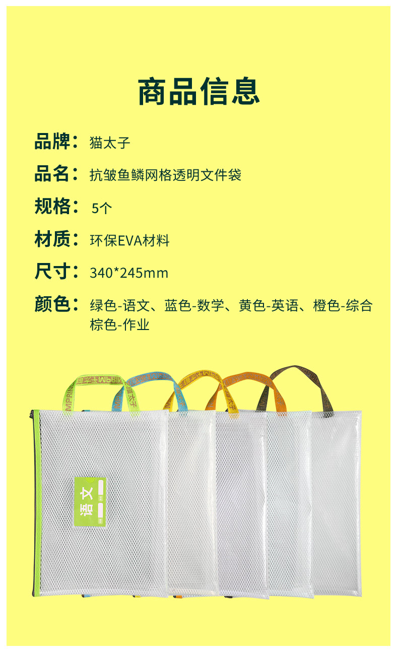 【猫太子M9056B】猫太子(MAOTAIZI)A4文件袋大容量拉链学生文具单层eva分类试卷收纳资料袋防水文件夹语数英3个装【行情 报价 价格 评测】-