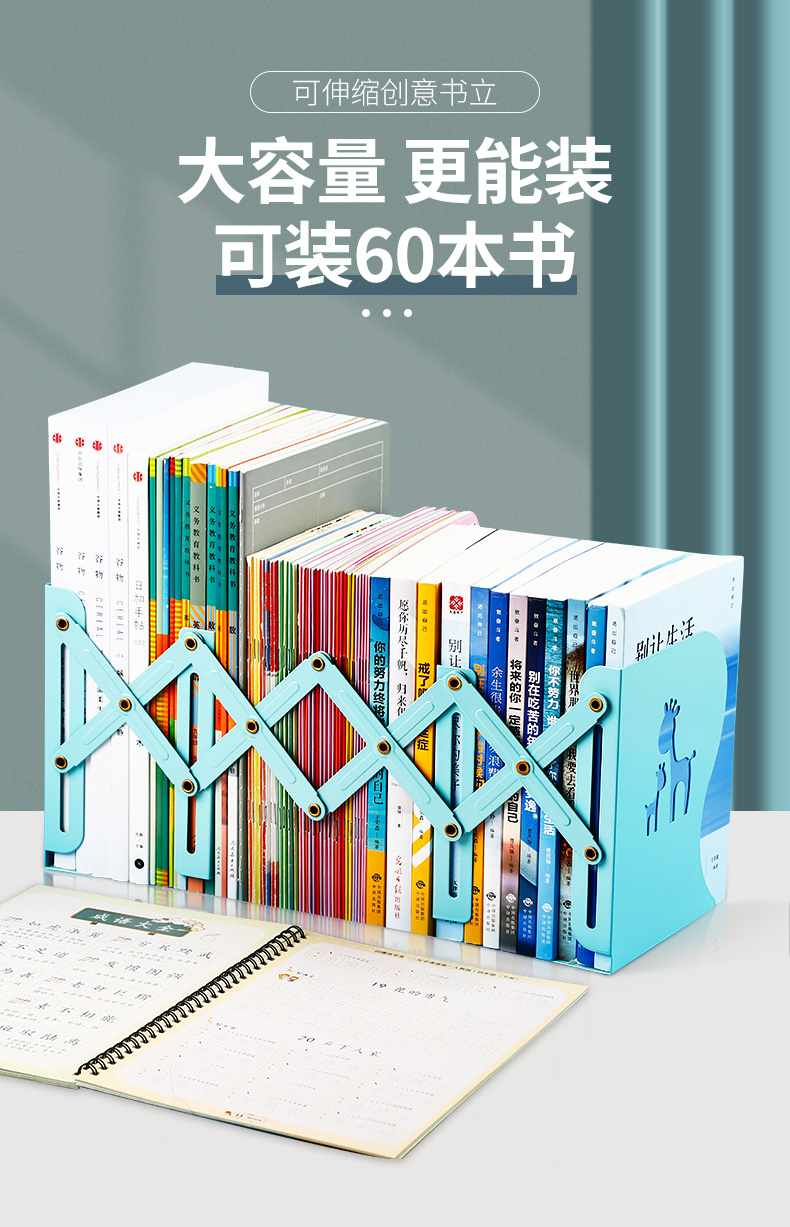 猫太子(MAOTAIZI)书立创意可伸缩书立学生用桌上简易书靠收纳放书架折叠书立书夹书挡镂空鹿(无印刷)蓝色