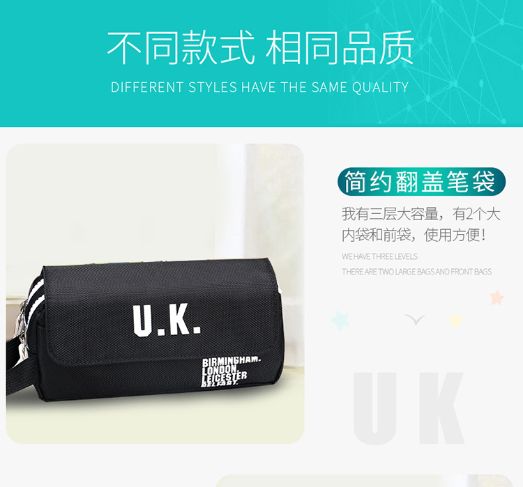 猫太子(MAOTAIZI)帆布笔袋多层大容量铅笔袋文具盒包男女中小学生韩版简约文具袋 灰色