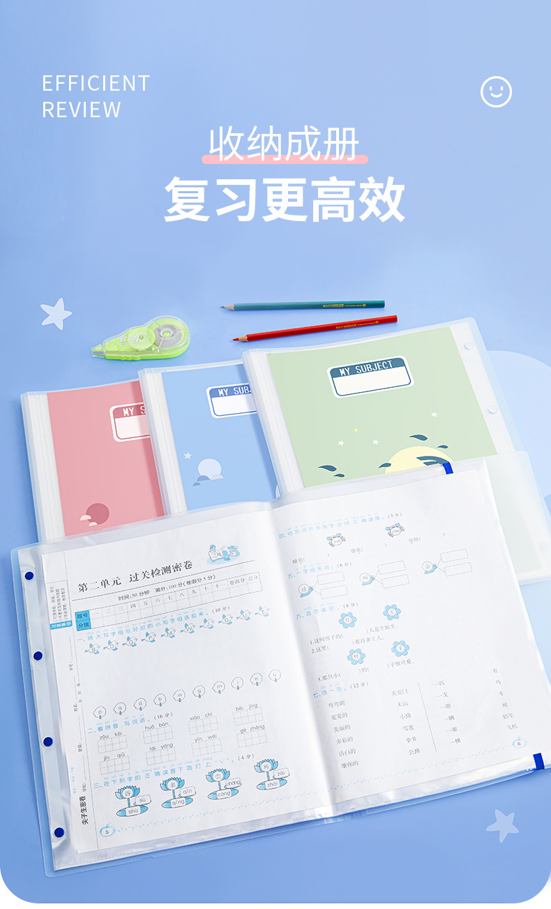 猫太子 MAOTAIZI 试卷册收纳袋资料册试卷夹文件夹大容量多层透明卡通款小学生用初高中生书夹40页 粉