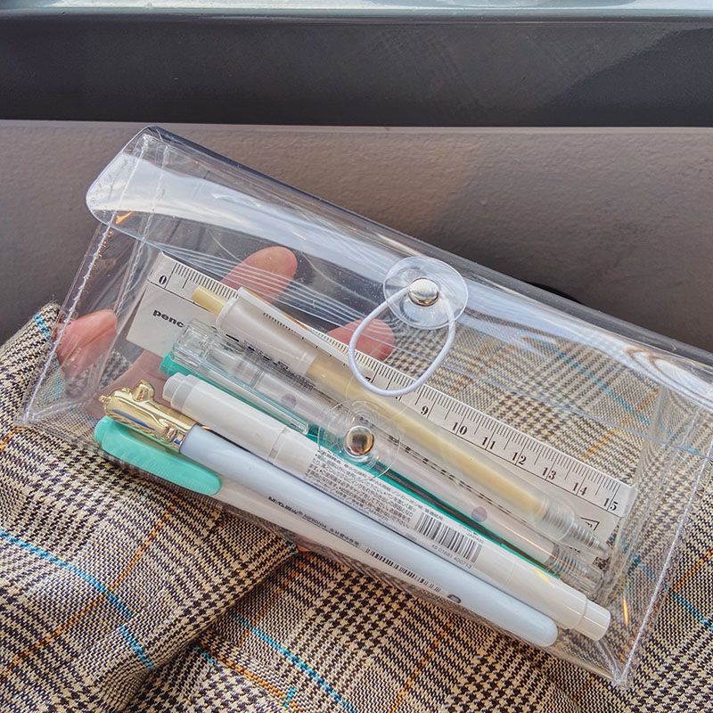 温妤透明笔袋ins日系文具盒女生韩版简约可爱大容量pvc收纳袋高颜值 黑扣透明笔袋