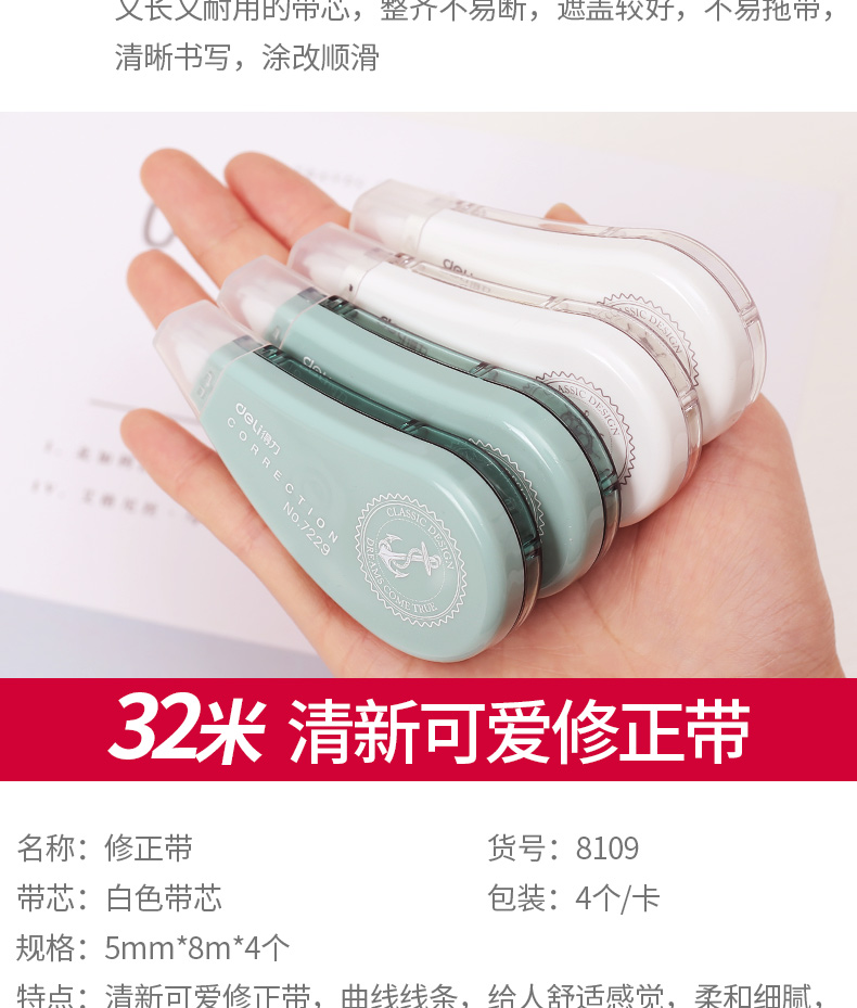 得力(deli) 修正带 大容量涂改带学生用改正错带可爱创意多功能批发 钜惠装12m*6个 8177【图片 价格 品牌 报价】-