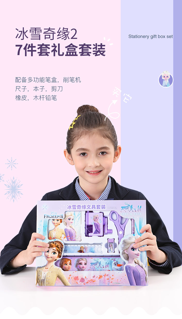 迪士尼(Disney)文具套装7件套 小学生文具礼盒 儿童开学文具礼包 生日礼物奖品 冰雪奇缘系列 紫色DF5562-B