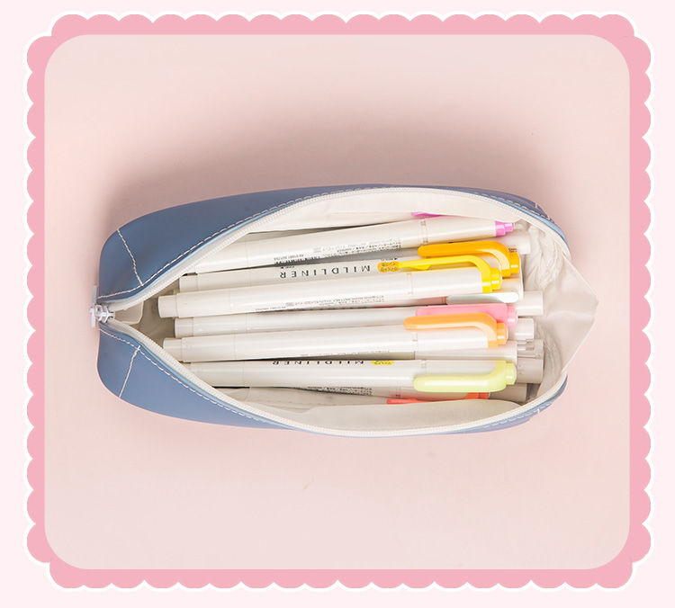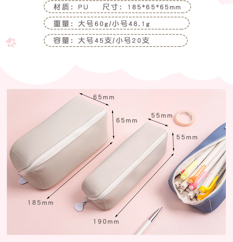 简约PU皮质大容量笔袋学生文具收纳创意多功能考试铅笔盒ldy 牛奶白 1个笔袋