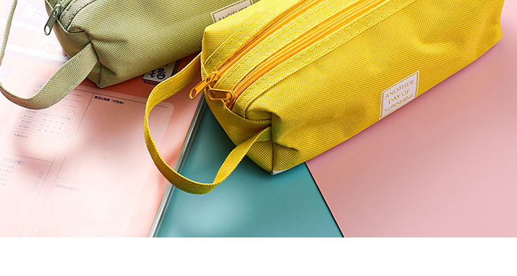 递乐 帆布笔袋多层大容量铅笔袋文具盒包双拉链笔袋男女中小学生笔盒韩版简约文具袋 6329 黄色