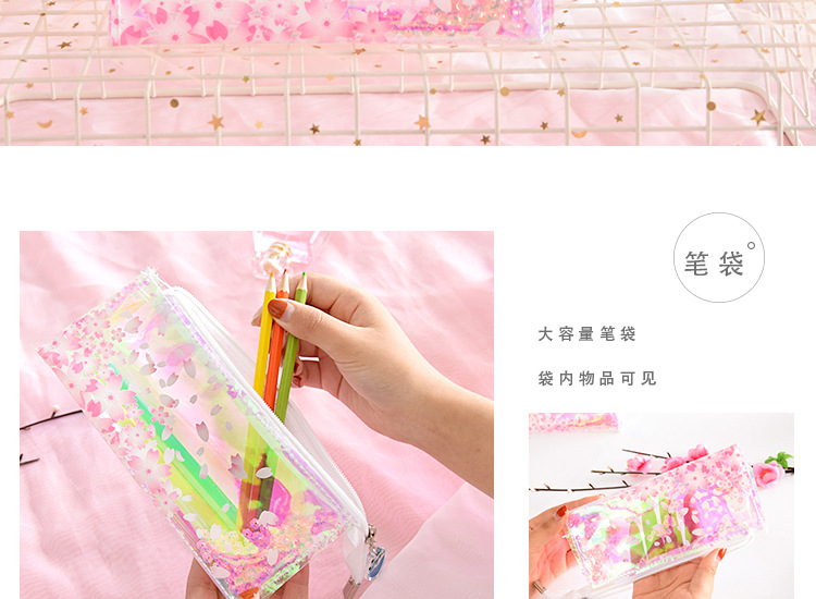 可爱い少女ペンケスファッションがクールで、学生レーザーのスパンコールがピッタリです。桜の透明色の文具ケースの铅笔のファスナー収纳袋にラジウムが入っています。