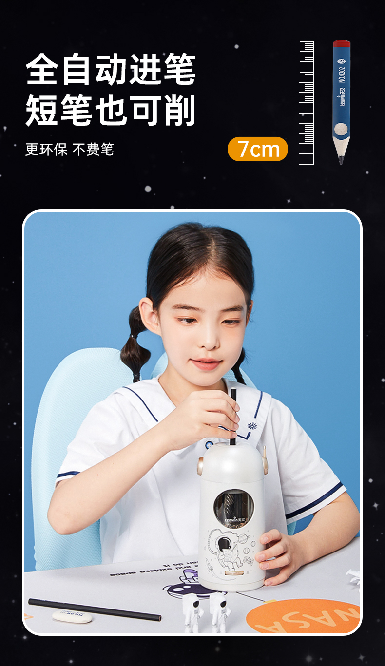 天文大口径全自動削筆刀太棒大三角鉛筆巻き筆刀電動回転筆刀小学生鉛筆刀自動削筆器削筆絞り8188-7宇宙銀